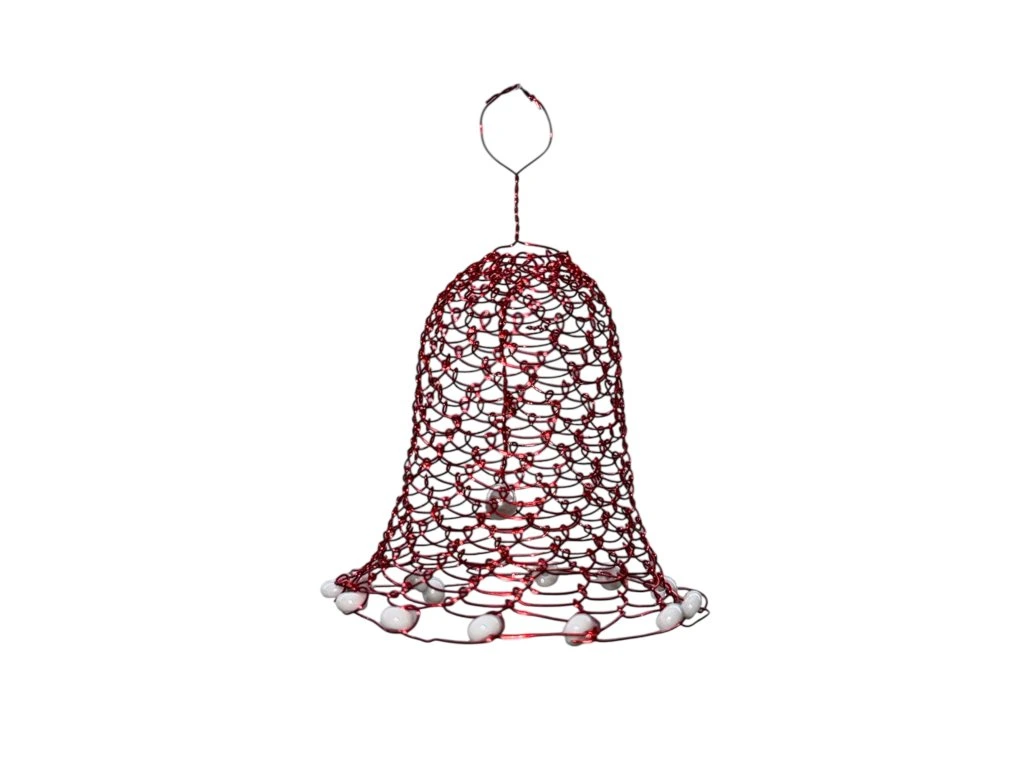 Tento ručně drátovaný červený zvoneček je něžnou dekorací, která v sobě nese kouzlo tradice i poctivé ruční práce. Jemné linie červeného drátu vytváří elegantní tvar, jenž působí lehce, slavnostně a hřejivě.