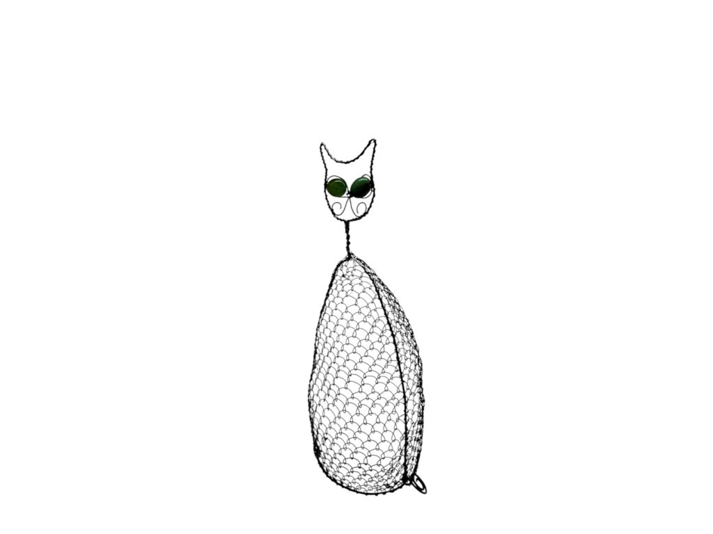 Tahle elegantní kočka z jemného drátku v sobě spojuje něhu ruční práce a osobitý šarm, který zaujme na první pohled. Každá křivka vznikla s trpělivostí a péčí, kterou vkládají naši senioři do každého svého výrobku. Zelené korálkové oči dodávají kouzelný výraz a trochu tajuplnosti – přesně tolik, kolik má mít správná kočka.