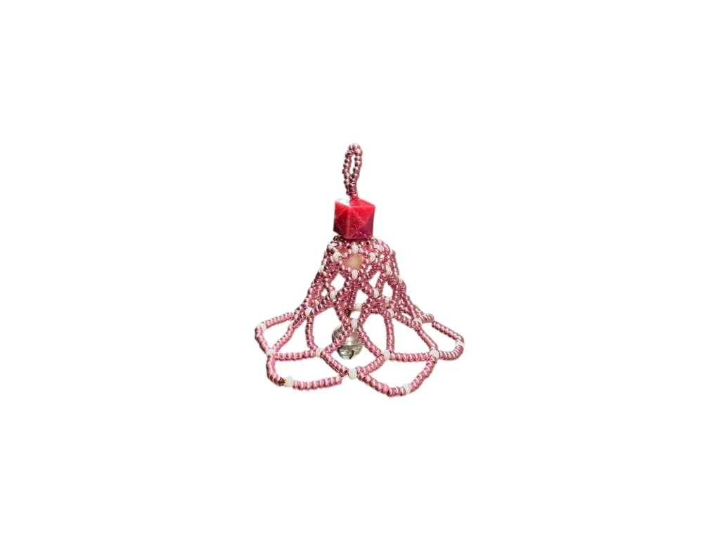 Tento něžný růžový korálkový zvoneček je symbolem jemnosti, péče a poctivé ruční práce. Každý detail je pečlivě vytvořen českými seniory, kteří do výroby vkládají své zkušenosti, trpělivost i radost z tvorby. Lesklé růžové korálky v kombinaci s drobnými světlými detaily vytvářejí lehkou a elegantní dekoraci, kterou doplňuje jemná rolnička.