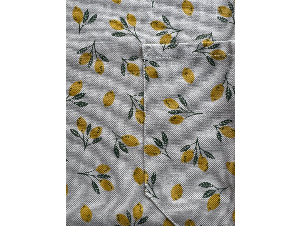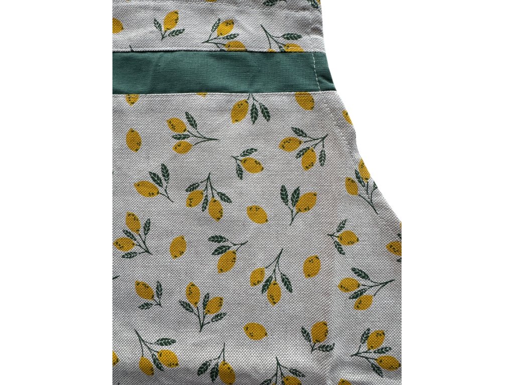 Tato ručně šitá zástěra s jemným citronovým motivem přináší do kuchyně svěžest, lehkost a dotek poctivé ruční práce. Každý steh je veden s pečlivostí a smyslem pro detail, díky čemuž vznikl kousek, který je nejen krásný, ale také praktický a pohodlný při každodenním vaření.