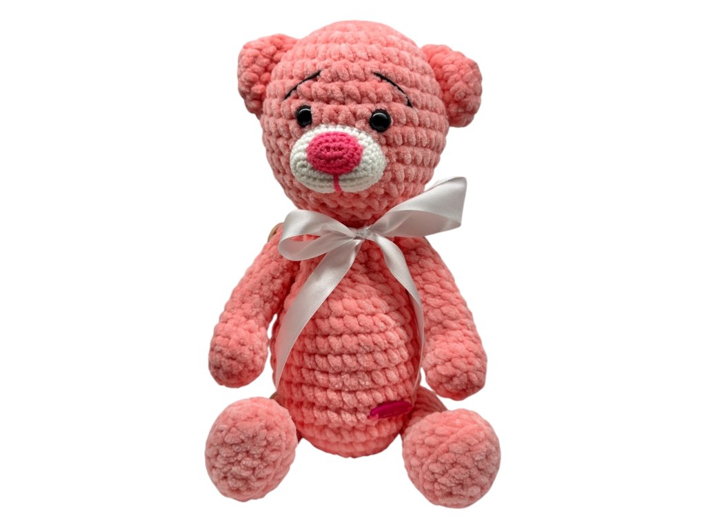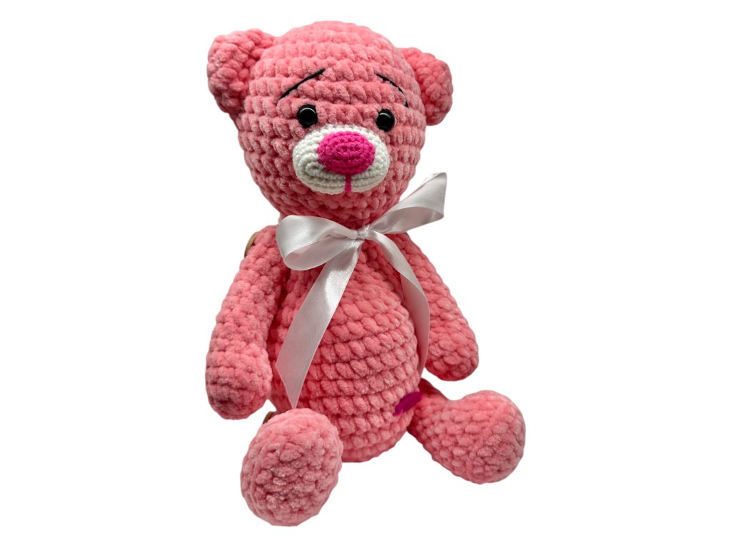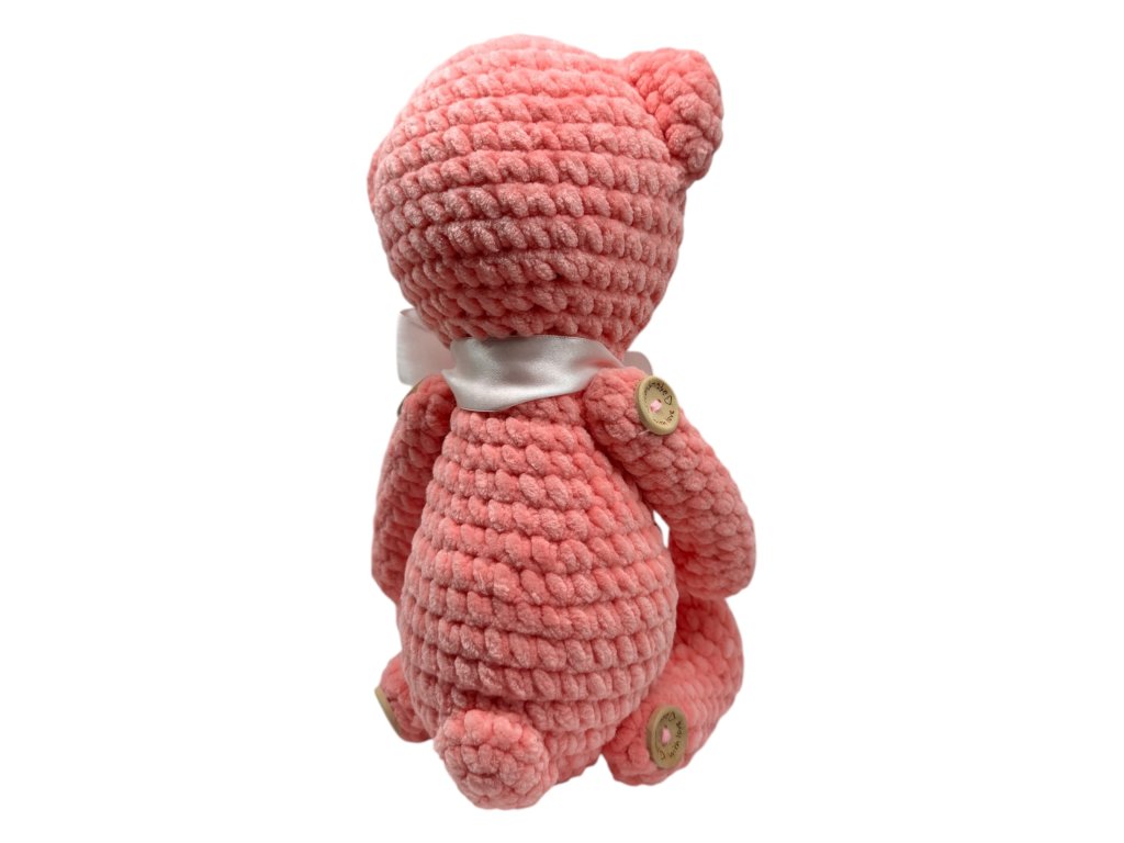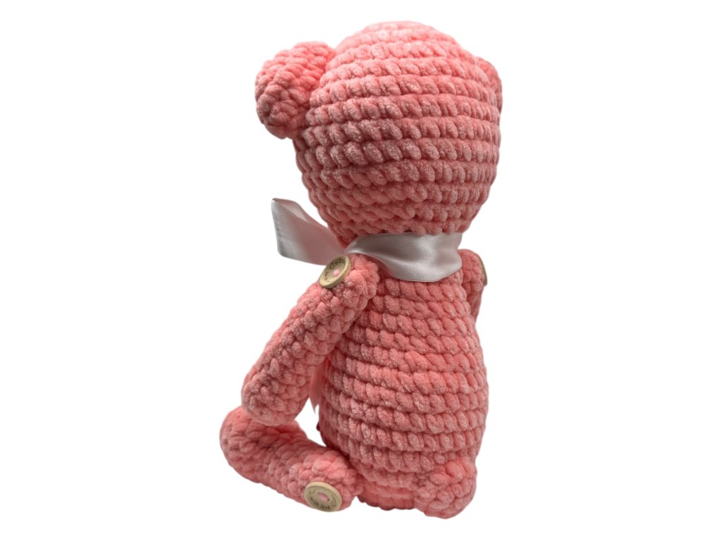 Tento něžný růžový medvídek je jako pohlazení, které rozjasní každý den. Ručně háčkovaný s láskou, pečlivostí a smyslem pro detail vznikl pod rukama šikovných seniorek, které do každého stehu vkládají radost a trpělivost. Každý medvídek je originál – se svým vlastním výrazem i osobností.
