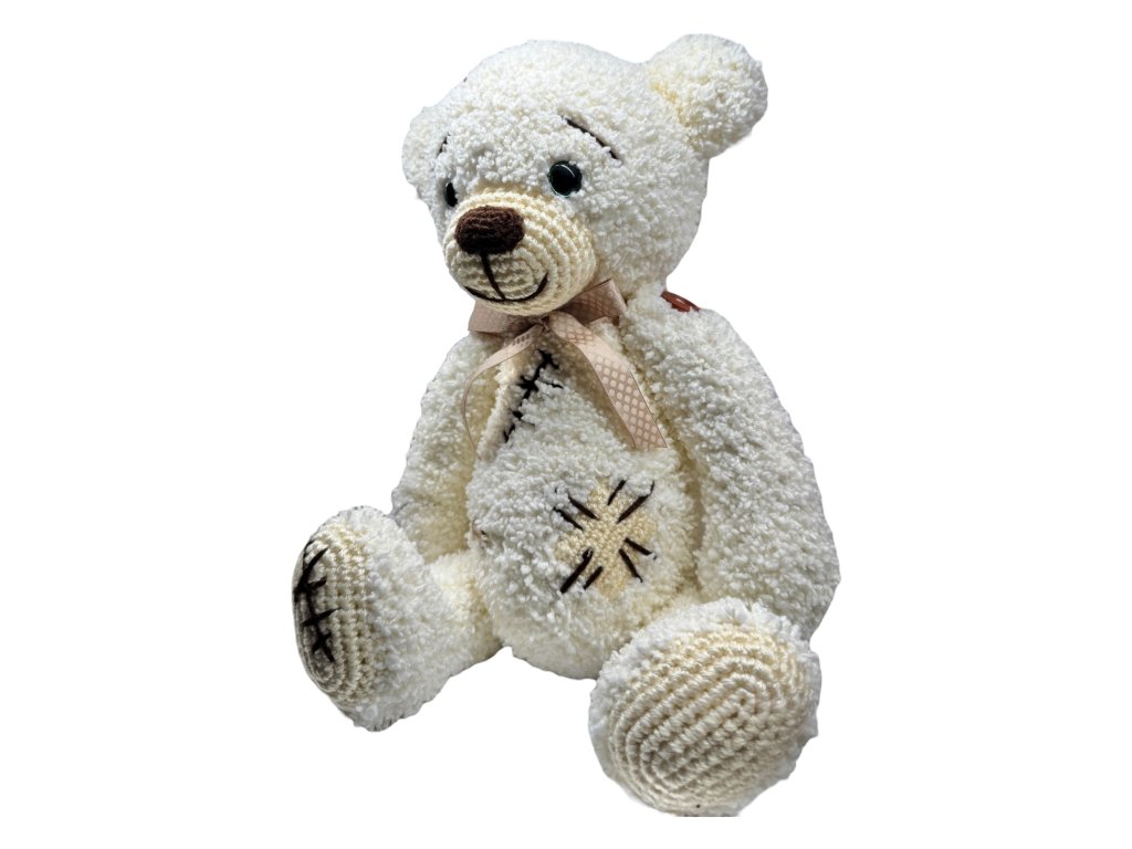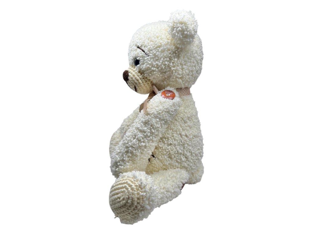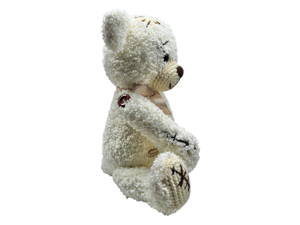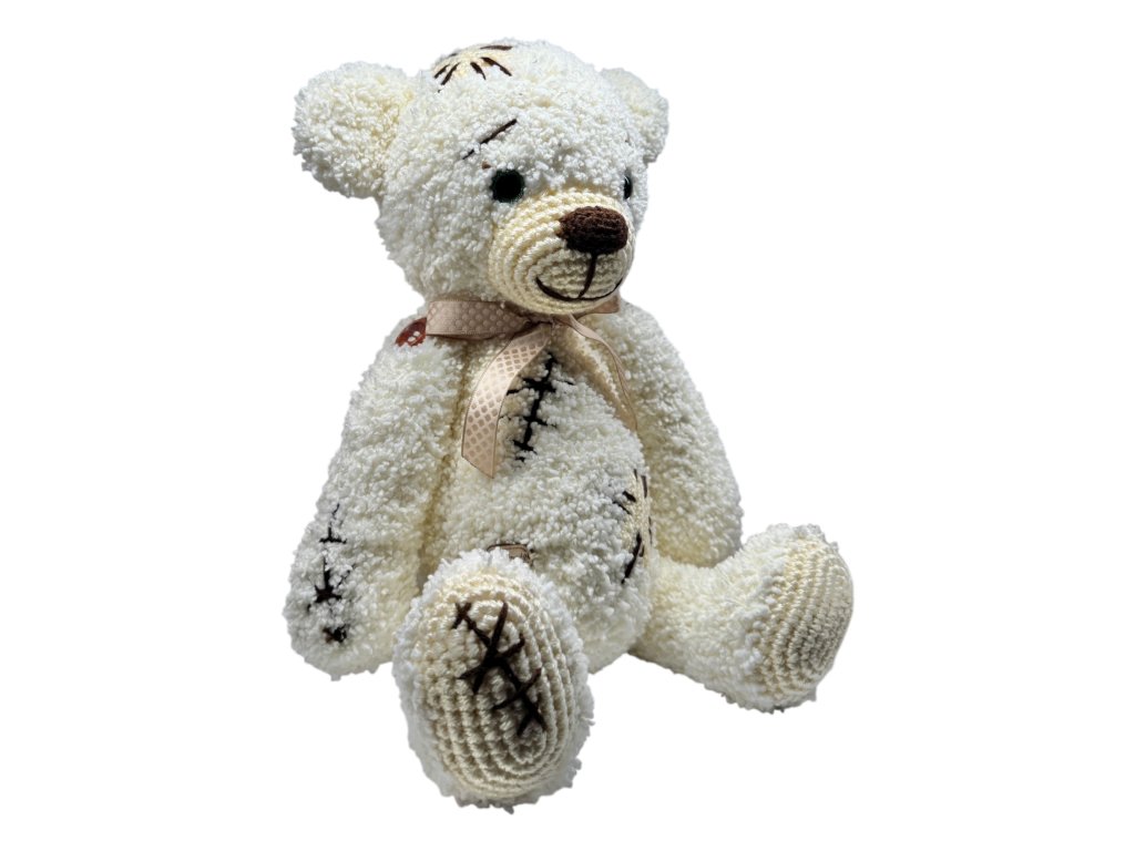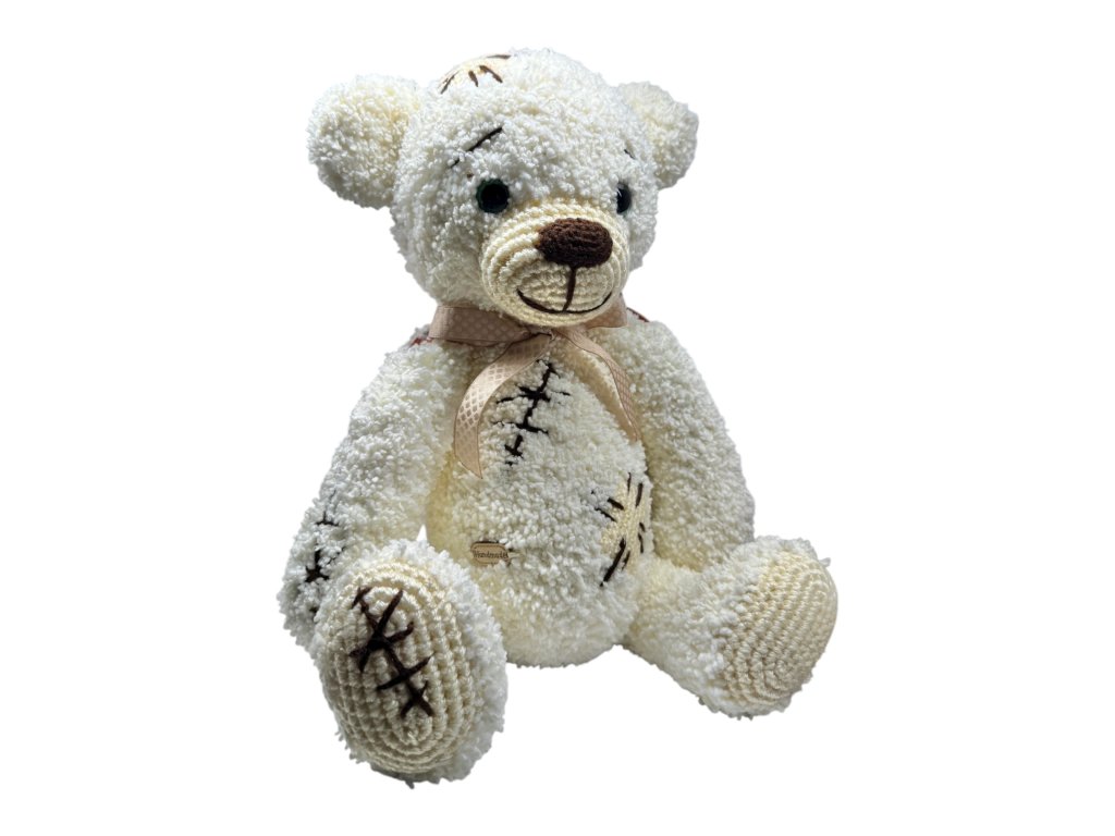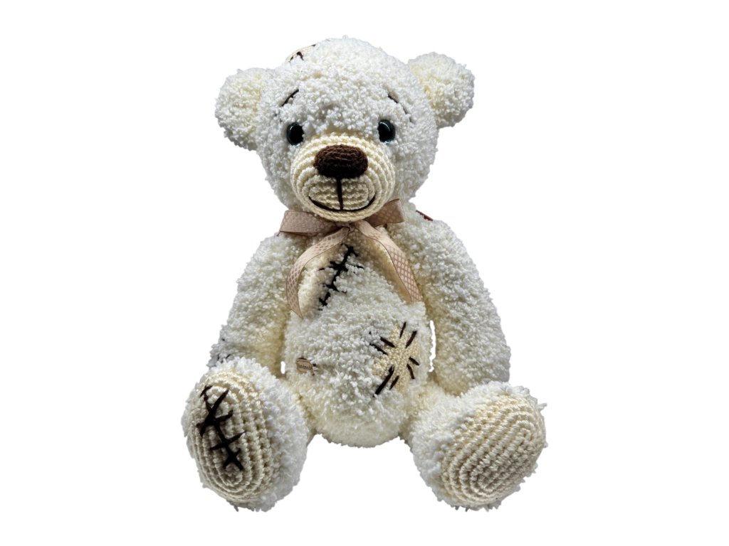 Tento háčkovaný medvídek je vytvořen s láskou a citem pro každý detail – od jeho jemného výrazu až po precizní stehy, které mu dodávají osobitost a kouzlo ruční práce. Každý medvídek je originál, který v sobě nese lidskost, trpělivost a hřejivou energii poctivého tvoření.