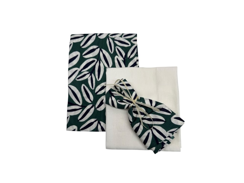 Decentní kombinace přírodní bílé a sytě zeleného vzoru vnese do vašeho domova klid, harmonii a kousek přírody. Tyto utěrky nejsou jen praktickým doplňkem, ale i stylovým detailem, který promění obyčejné chvíle v malé okamžiky radosti.