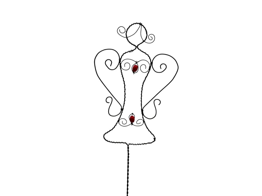Tento ručně drátovaný anděl je symbolem klidu, ochrany a lásky, vytvořený s jemností a pečlivostí zkušených rukou. Elegantní linie drátku se zde snoubí s decentními červenými korálky, které působí jako malé kapky světla — připomínka naděje a tepla i v těch nejtišších chvílích.