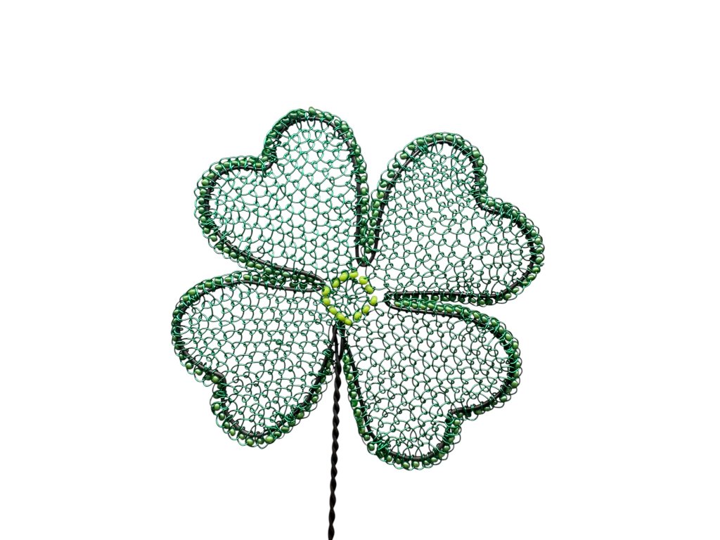 Tento ručně vyráběný čtyřlístek není jen dekorací – je to malý talisman plný energie, laskavosti a lidského doteku. Každý lístek je pečlivě spletený z drátku a korálků, jeden po druhém, s trpělivostí a srdcem, které se do něj přenáší spolu s každým otočením ruky.