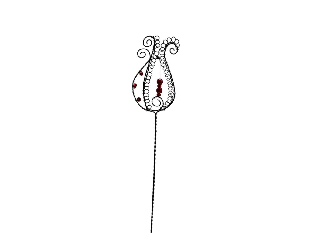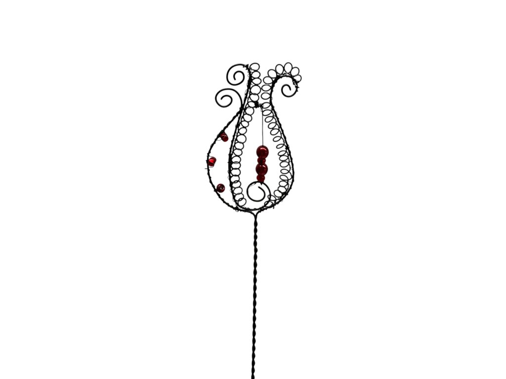 Ručně drátovaný tulipán s červenými korálky je symbolem elegance, trpělivosti a poctivé ruční práce. Jemné křivky černého drátu a sytě rudé detaily vytvářejí harmonii, která rozzáří každý interiér. Každý kus je originál, vytvořený s láskou a péčí českých seniorů.