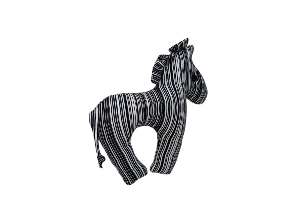 Tato roztomilá zebra vnese do vašeho domova kouzlo ruční tvorby a klidné harmonie. Každý kousek je pečlivě šitý ručně, s důrazem na detail a jemnost zpracování. Pruhovaný vzor jí dodává osobitý šmrnc – působí elegantně, ale přitom hravě a přátelsky.